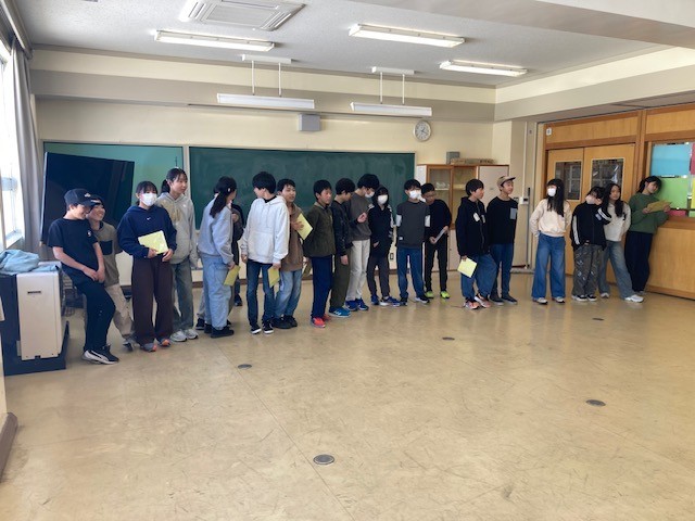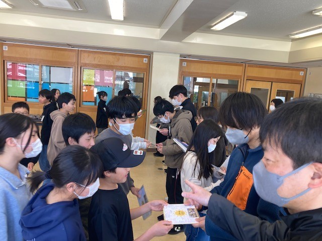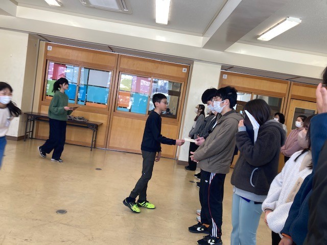 6年生が一列に並び、「ありがとうございました。」と声を出してから、色紙を渡してくれました。