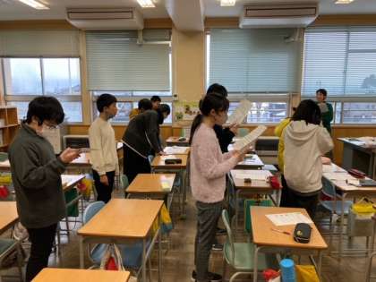 2月21日(水)の1時間目、6年生が二手に分かれて歌の練習をしていました。