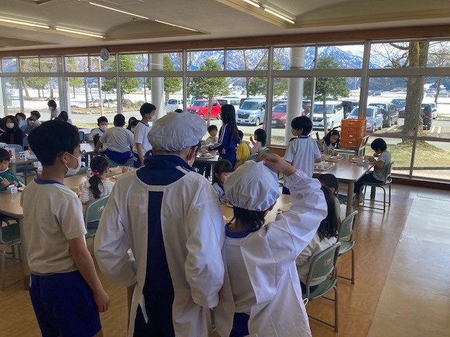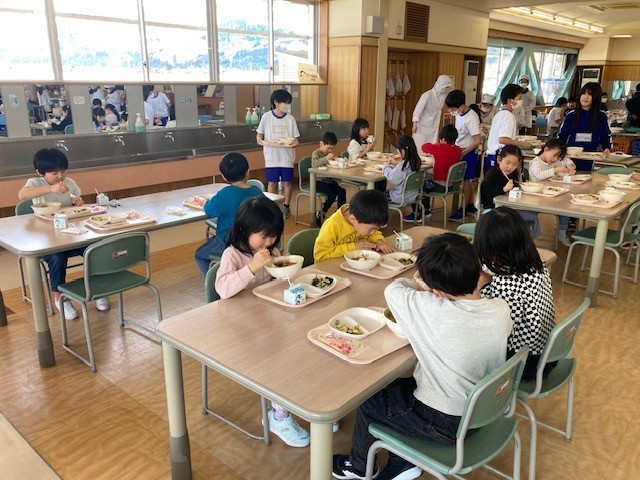 6年生が手伝ってくれたり、一緒に食べたりしていました。