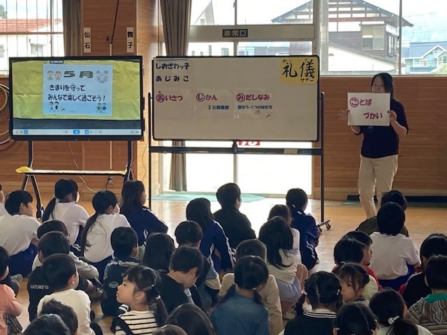 4月30日(水)の朝活動は、5月の生活目標についての生活朝会でした。