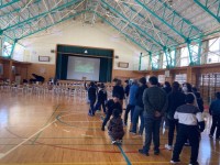 赤組は視聴覚室、白組は体育館です。