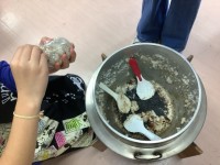 12月3日(水)の昼休みです。5年生の、ぬか釜でのご飯つくりと豚汁作りが終わりま...