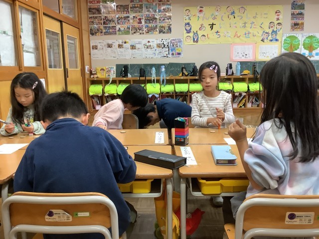 11月11日(火)の1時間目、1年生が国語の学習をしていました。のりものカード、...
