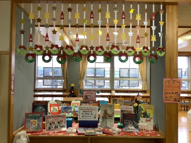 12月22日(月)です。今週は雨降りでのスタートです。図書室がタイムリーな展示で...