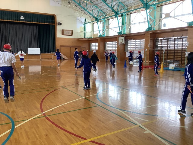 1月14日(水)の5時間目、5,6年生が体育をしていました。体育館でなわとびでし...
