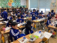 1月14日(水)の1時間目、1年生が図工をしていました。版画を刷る活動です。1人...