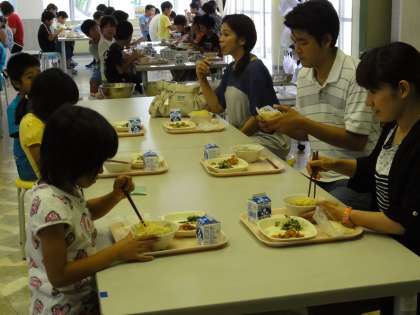 7月10日 1年生保護者対象の給食試食会を行いました。