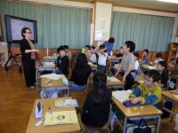 3年生の5時間目は体育の授業でした。鉄棒の学習です。「だるまさん」「足かけあがり」「地球まわり」など、いろいろな技に挑戦していました。順番待ちで見ている人からも「手を交差させて!」「足を離して」などアドバイスの声が掛けられていました。そのおかげか、1人1人の「技カード」にはできたことを表す印が確実に増えています。