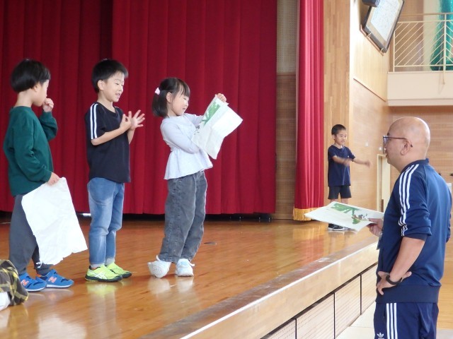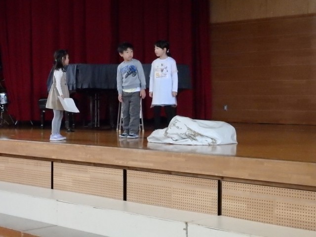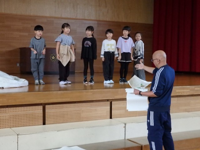 1年生の2時間目は学習発表会に向けて初めてのステージ練習を行いました。しかも1年生にとって大きな体育館のステージの上で劇をするのは初めてです。1つずつ担任の先生とセリフや動きの確認をしていきました。みんなで協力して練習に取り組んで、本番では笑顔で元気に堂々とした姿を見せて欲しいです。