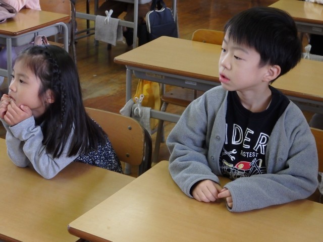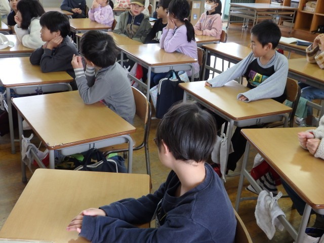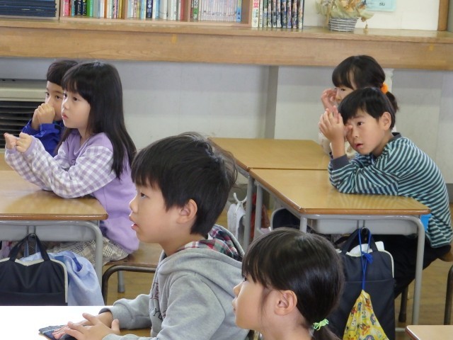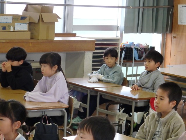 3連休明け、1,2年生は読み聞かせからスタートです。落ち着いた雰囲気でお話を聞いていました。