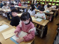1年生の3時間目です。まずは3学期の学級委員を選びました。「やりたい!」と立候補する人がたくさんいましたので、1人ずつ「学級委員になって頑張ること」を発表していきました。「他の人の勉強が分からないところを教えてあげる」「いけないことをしている人がいたら注意する」など、学級委員として頑張ることを発表してくれました。