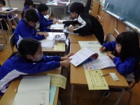 3年生の3時間目です。3学期の係分担について話し合いを行いました。ここでも学級委員の子が司会と書記を担当して話し合いを進めました。話し合いの中で「これまであったけど必要のない係」「みんなのために必要な係」について考えていきました。係が7つ決まったところで、自分がやりたい係にネームプレートを貼っていきました。