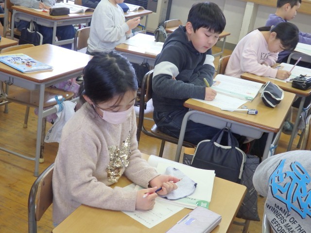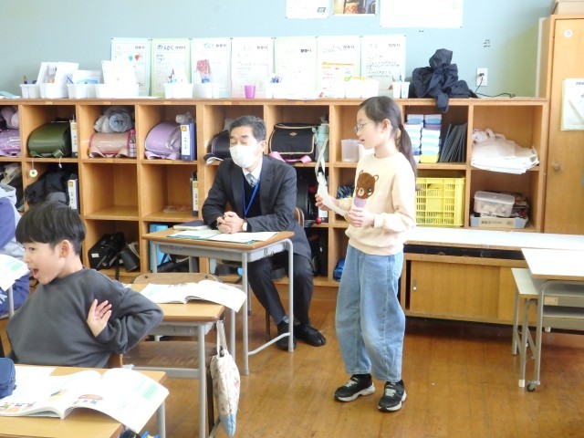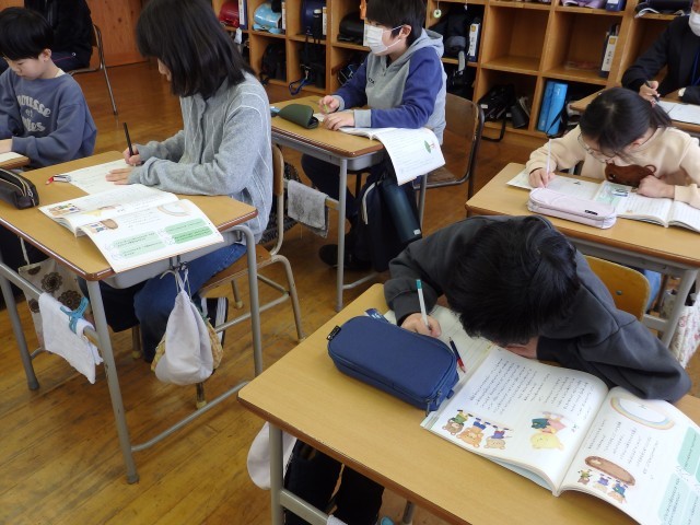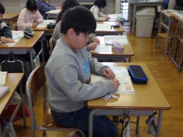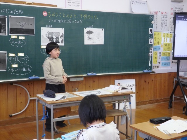 3年生の1時間目は道徳の授業でした。「りつとにじのたね」という資料を読んで「1人1人みんな違うこと」「違いがあることは大切なこと」などについて学びました。資料は「クマの国に住むりつという名の男の子はかわいい物が大好き。でも、友だちからからかわれ、泣いて国を飛び出しました。虹の国で出会ったネズミのチウに「違うってとてもいいことだよ」と教えられ、また泣いてしまいました・・・」という内容です。りつが流した2回の涙の意味を考えるなどして『違うことのよさ』について考えました。