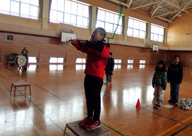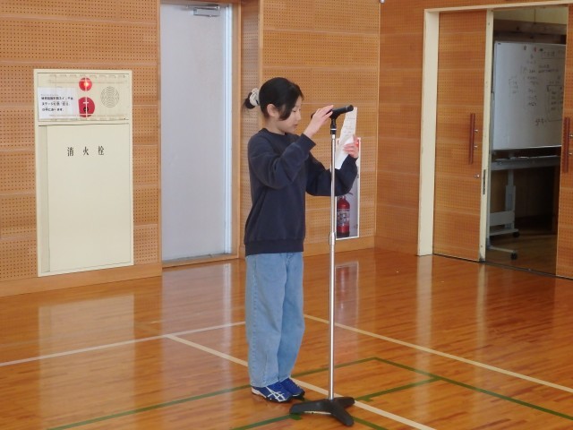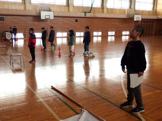 4年生は2時間目に激励会の練習をしました。親善スキー大会の激励会が2月5日に行われます。陸上大会激励会に続き、4年生が全校をリードして進めます。本番どおりの流れで司会のシナリオや動き、応援でのエールなどを練習しました。激励会の計画や運営、リーダーとしての応援などの経験をして、高学年になるステップを登ります。