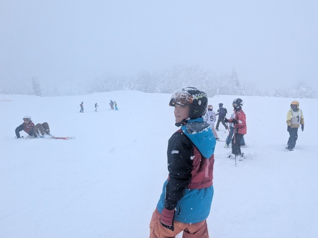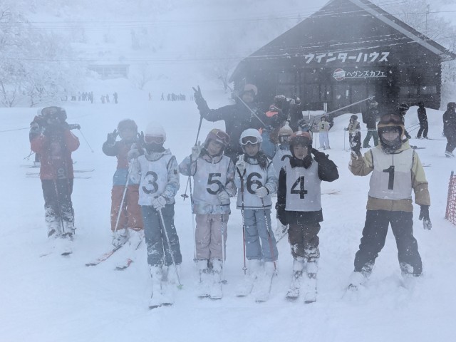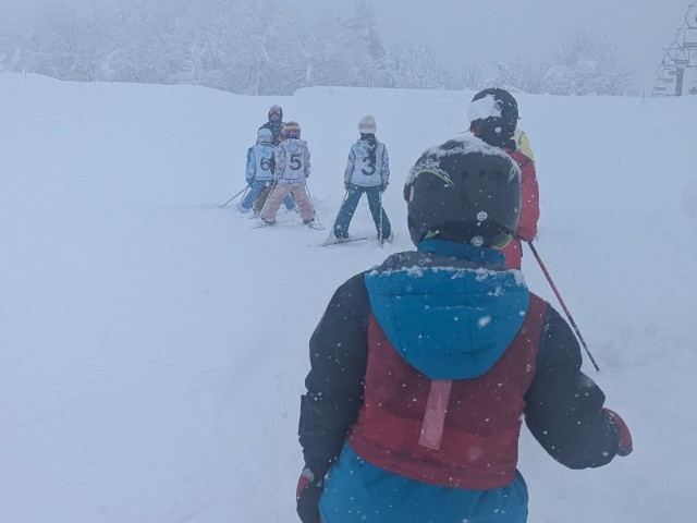 3,4年生のスキー授業、別カメラの写真です。1班の子たちのレッスンの様子です。