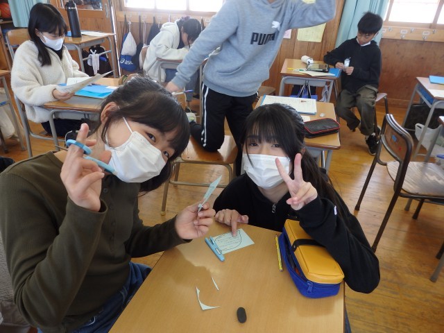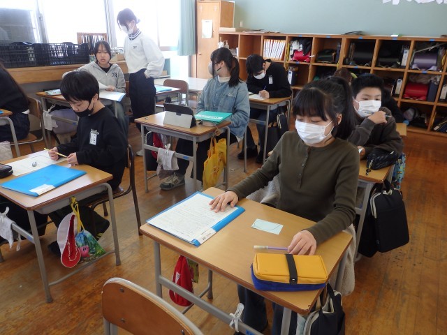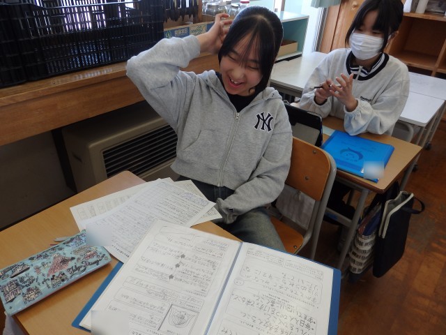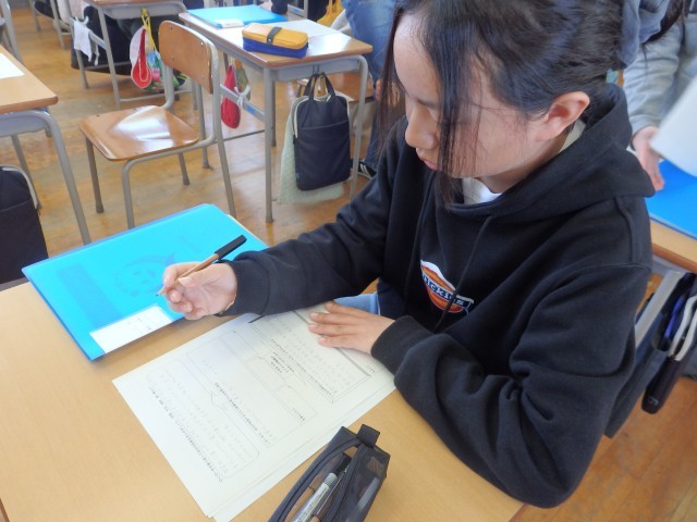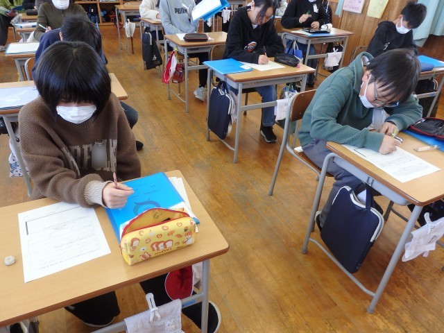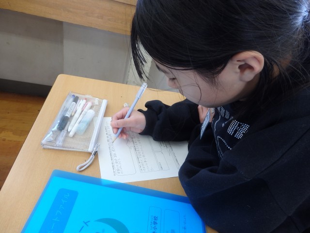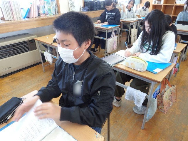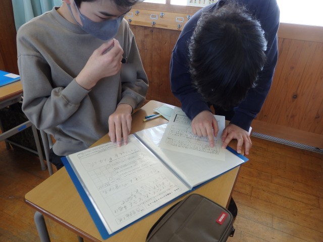 6年生の2時間目は道徳の授業でした。昨日の続きで「キャリアパスポート」に綴る「1年間の振り返り」を書いていました。「キャリアパスポート」に綴ってある1年生の時からの「○年生になって」や振り返りを友だちと見て、「こんな字を書いてたんだ」「今と顔が全然違う」と話していました。6年間の成長を感じますね。