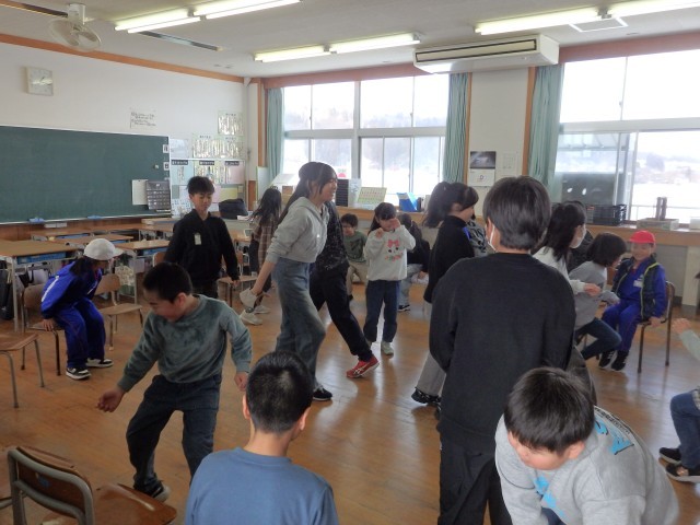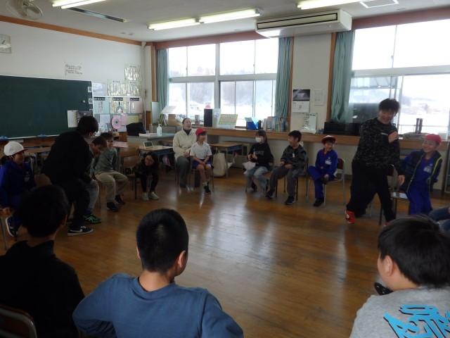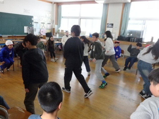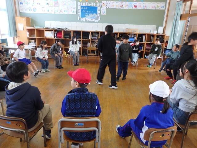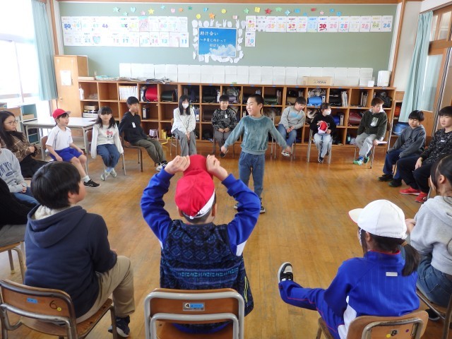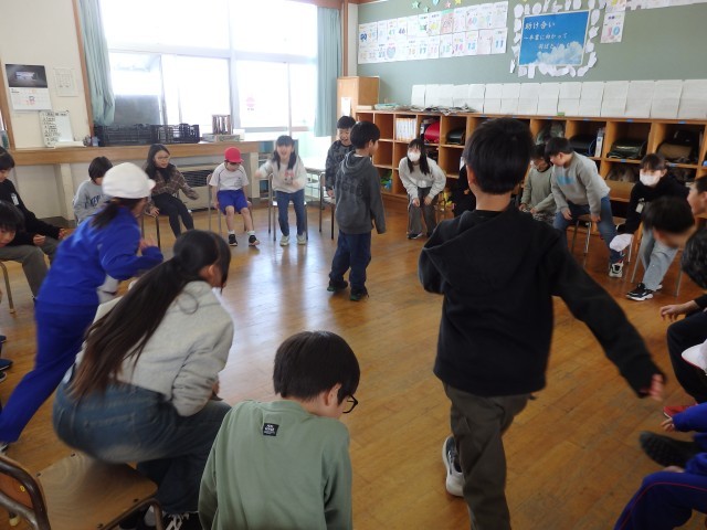 ひまわり班遊び、9,10班は「何でもバスケット」をしました。5,6年生が盛り上げ役として大活躍でした。低学年の子が出した「自分の名前の漢字が難しいと思う人」のお題に「オレのは難しいよね」「澤があるからな」と言いながら立ち上がってくれていました。優しいですね。「靴に白色が入っている人」で一気に大移動でした。