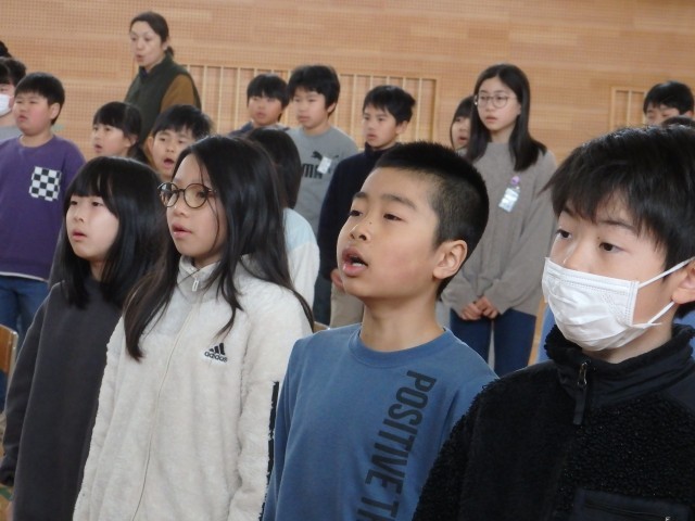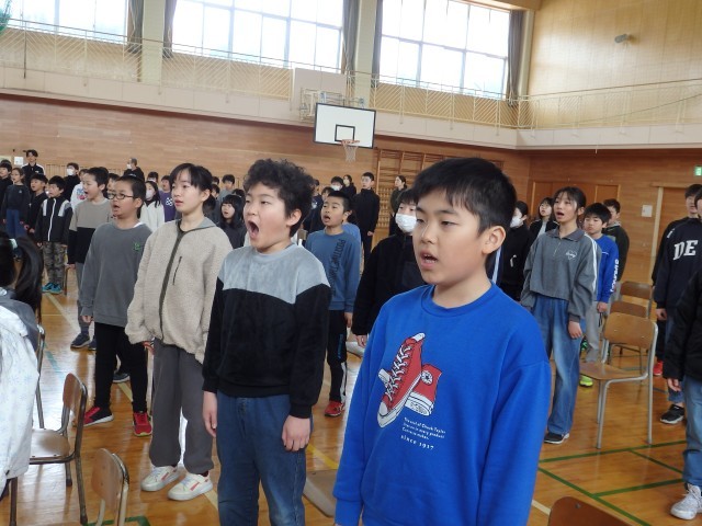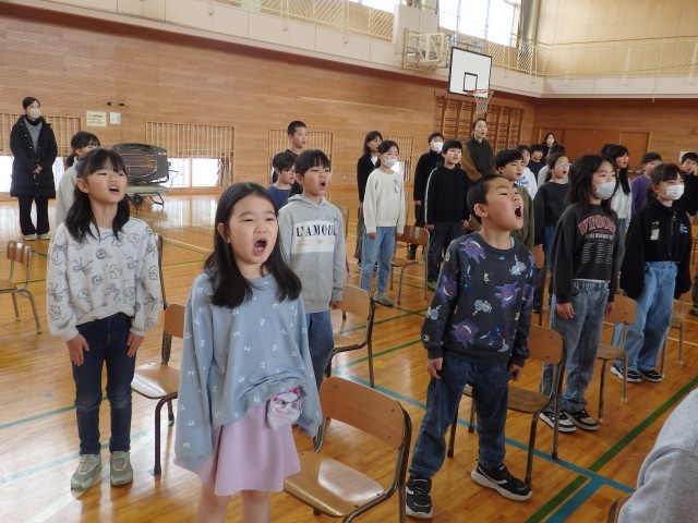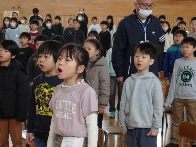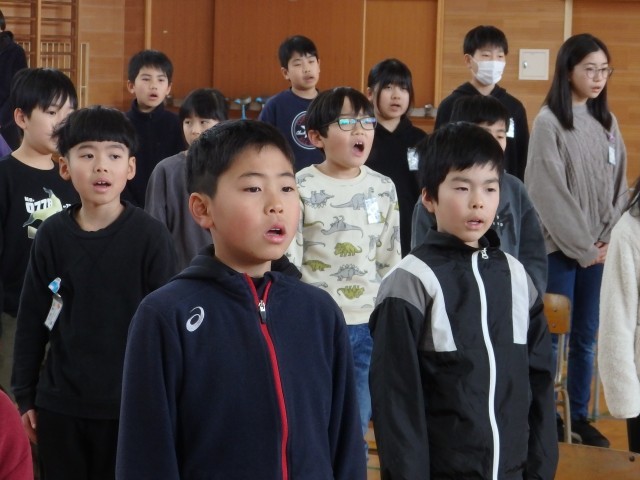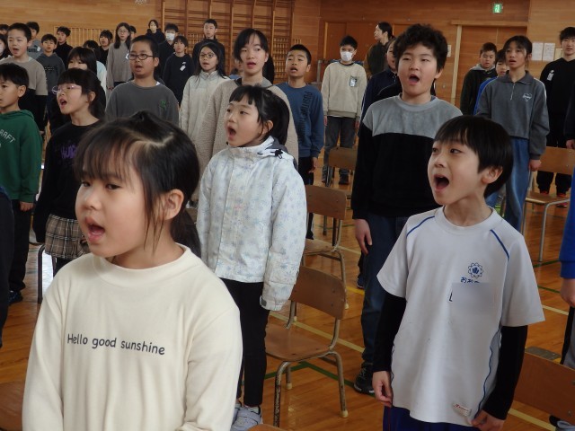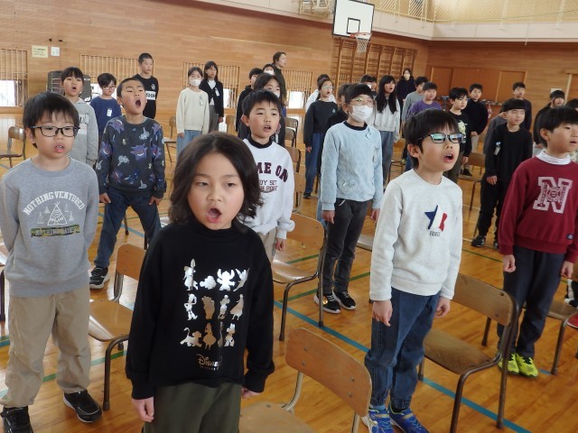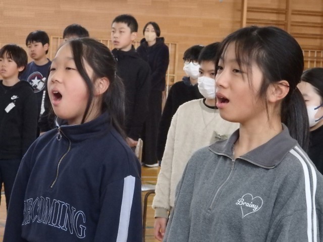 在校生が歌う「大空が迎える朝」の練習です。感謝の気持ちを込めて、口を大きく開けて歌声を届けます。