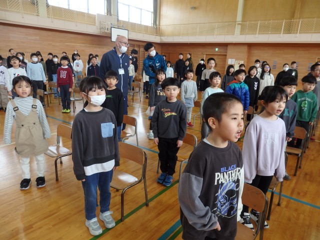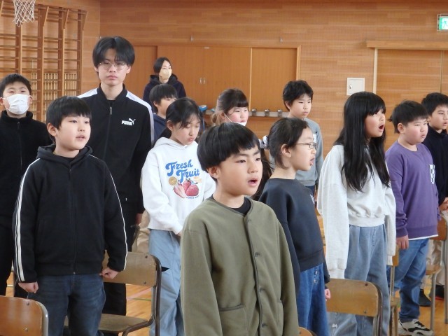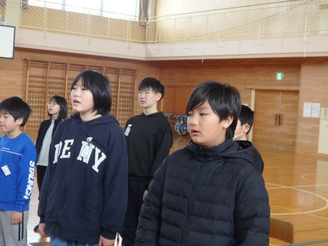 全校で歌う校歌の練習です。6年生が校歌を歌うのはもちろんですが、1~5年生が6年生と一緒に校歌を歌うのも卒業式が最後です。精一杯大きな声で歌ってほしいです。