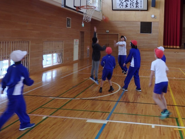 5年生の5時間目は体育の授業でした。今年度最後の体育です。バドミントンかバスケットボールのどちらかを選択して楽しんでいました。どちらも和気あいあいとした雰囲気の中で楽しんでいました。