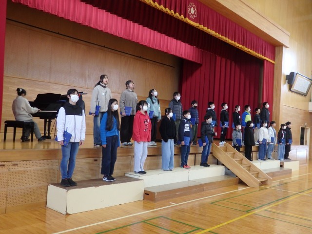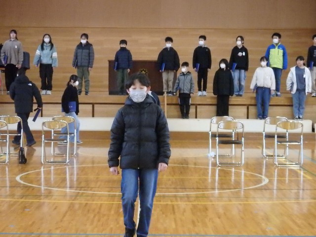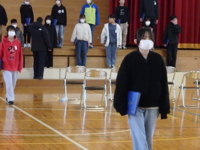 6年生は1時間目に卒業式練習を行いました。今日は本番どおりに校長から子どもたちへ卒業証書を手渡す練習をしました。返事の声も姿勢もとてもいいですね。その後、これも本番どおりに証書を手にしたままで卒業合唱や退場の練習を行いました。