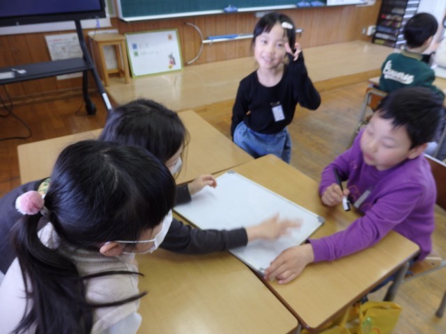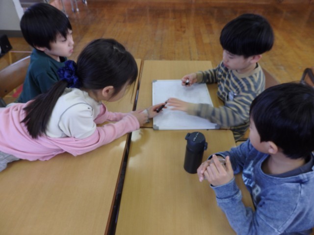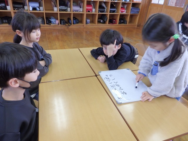2年生の1時間目は生活の授業でした。「1年生に教えたい」という内容で、1年生に学校のことを教えてあげる活動を行います。今日はどの場所について教えてあげるか考えました。班ごとで教えてあげたい場所の候補を何カ所か挙げ、その中から6つに絞りました。体育館、グラウンドとプール、図書室、音楽室、保健室、ひだまり教室。どの班がどこを教えてあげるのでしょうか。