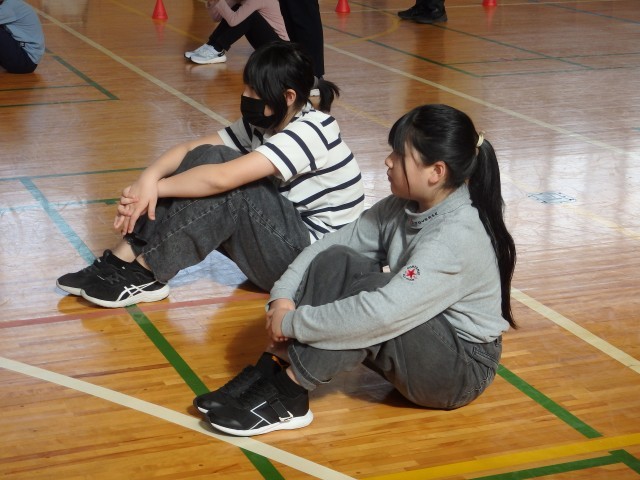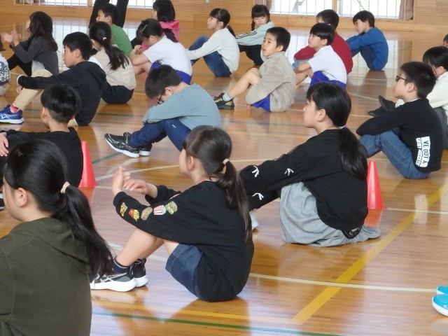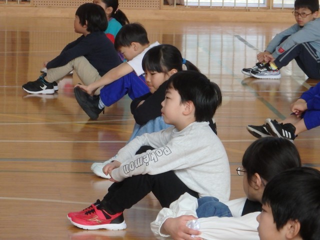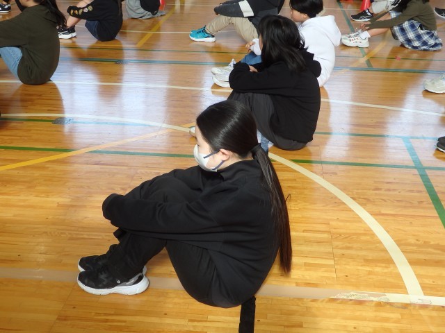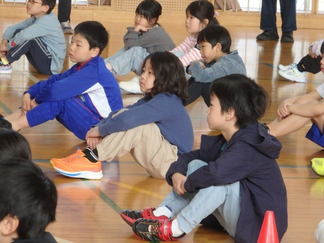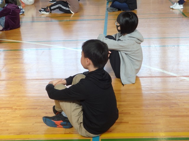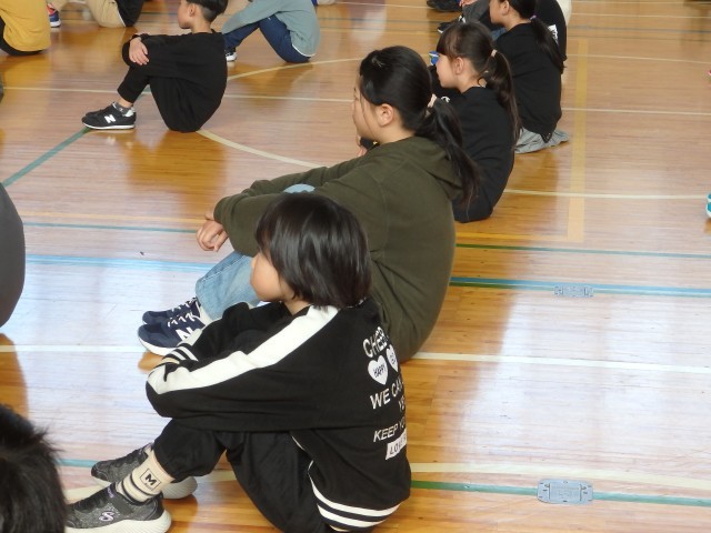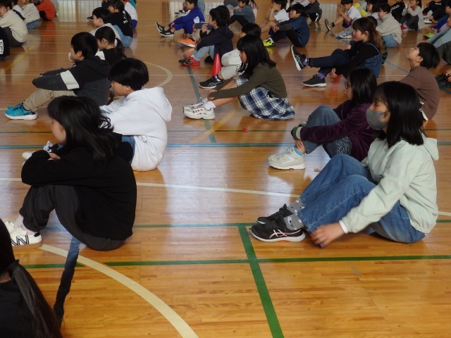 ひまわり朝会で代表の子のめあて発表を聞く子どもたちの姿です。低学年から高学年まで、どの子も姿勢よくしっかり顔を上げてお話を聞いています。『集合・整列の早さ』『話の聞き方』、『校歌の歌声の大きさ』は引き継いでいきたいおおまき小のよき伝統です。