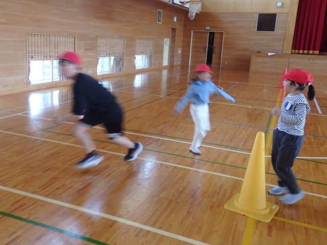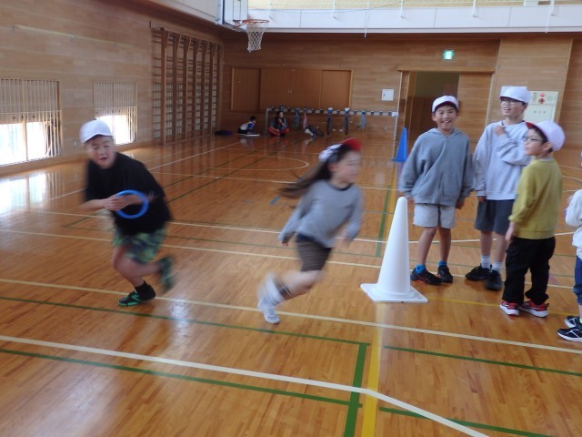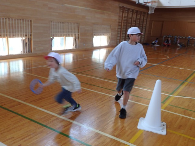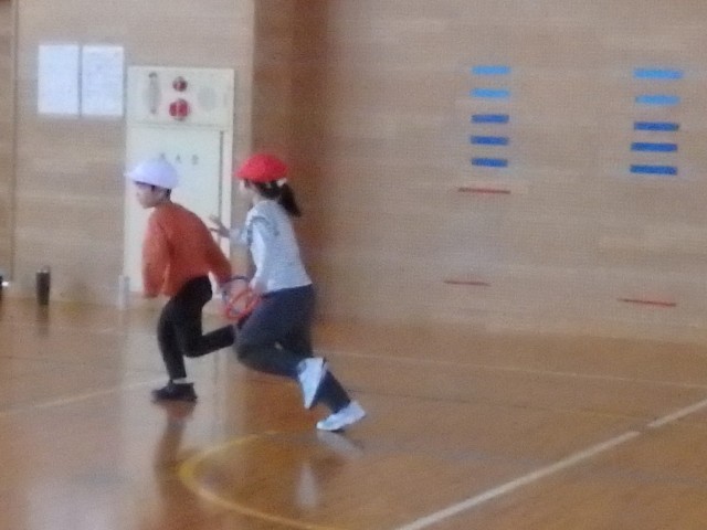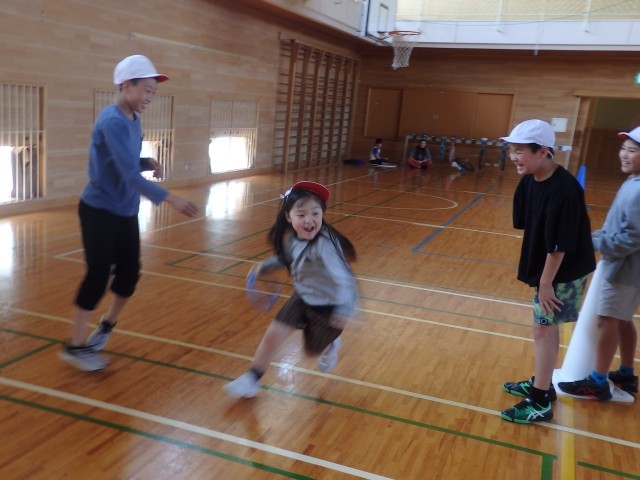 6年生の「1年生と一緒に遊ぼう」、「きつね狩り」のスタートです。2回戦が終わって1対1の同点。さて、3回戦目を制したのはどちらのチームだったでしょうか。
