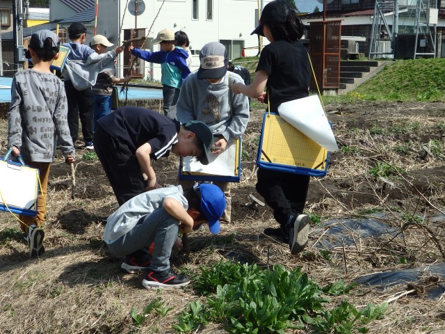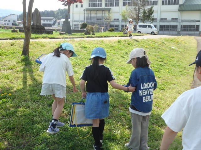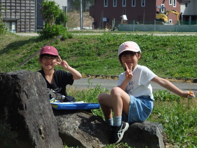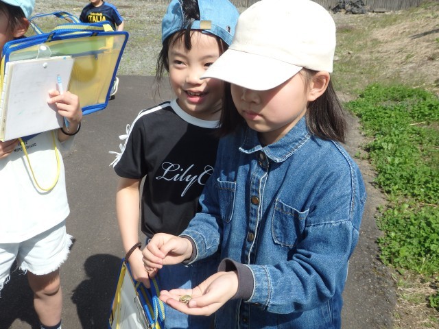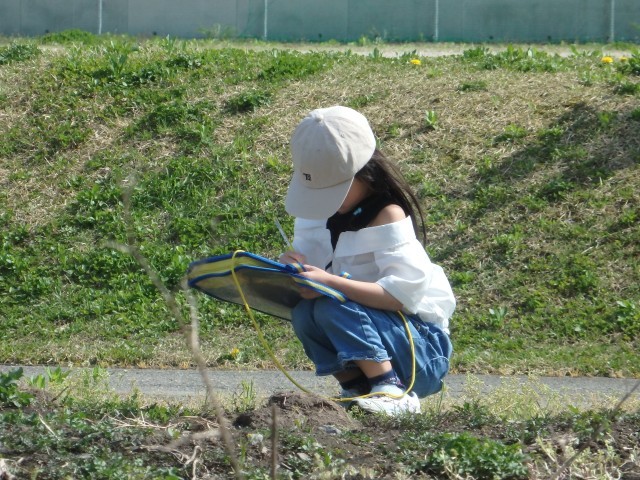2年生の5時間目は生活の授業でした。春を探しに外に出掛けました。咲き始めた花や芝生や木の様子など、春を見つけて絵に描きました。中にはカエルをつかまえて先生や友だちに見せている子もいました。あたたかい午後の日差しの中で楽しそうに取り組んでいました。