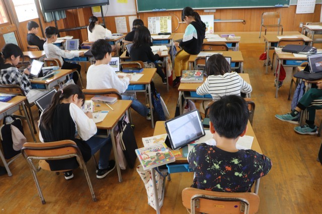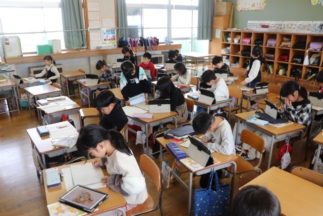1限、2年生は国語「ビーバーの大工じ」の発展学習の続き。