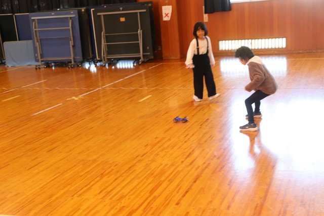 追求課題は「◎ゴムののびる長さをかえて車の走るきょりを調べよう」でした。