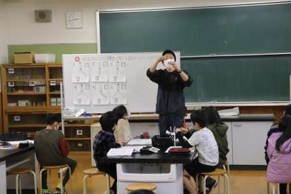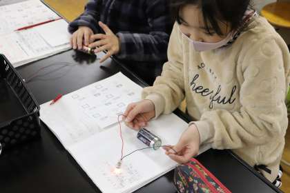 6限、3年生は理科室で理科「明かりをつけよう」の学習。