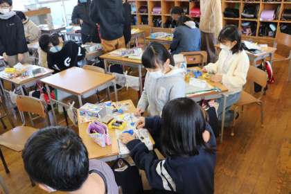 完成した子どもは、まだできていない子どもにやさしく教えていました。