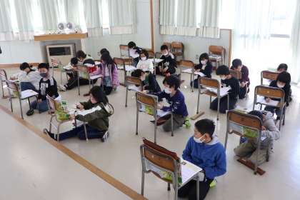 2限、3年生は音楽室で音楽の鑑賞をやりました。