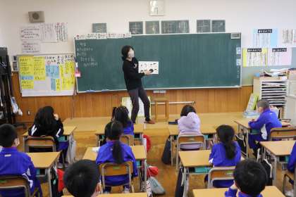 今朝、1年生はボランティアさんによる本の読み聞かせでした。