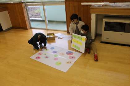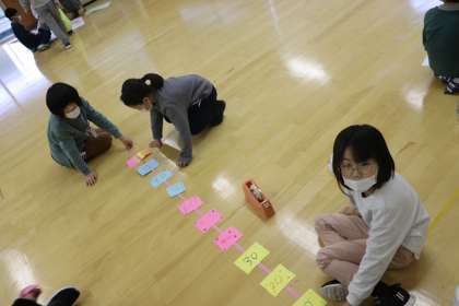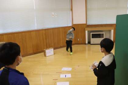1限、2年生は多目的室で「あそびランド」のリハーサル。