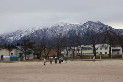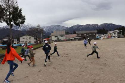 子どもたちは元気いっぱい広いグラウンドを走り回っていました。