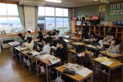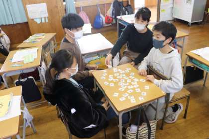 まずは、フォニックスかるた。4人組になってALTの発生に合わせてかるたを取っていました。