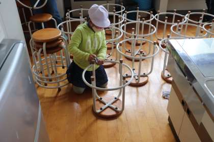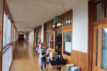 長いほうきを使って高いところのすす払いをしたり、普段やらないところをぞうきんがけしたりしていました。