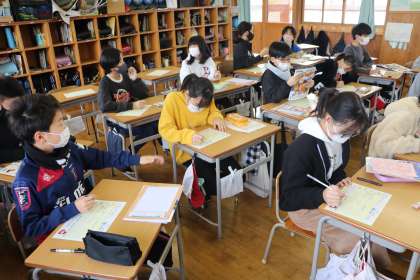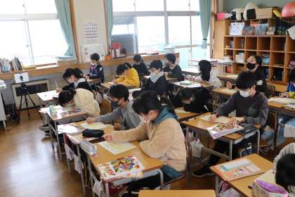 1限、5年生は学活で冬休みの計画を立てていました。