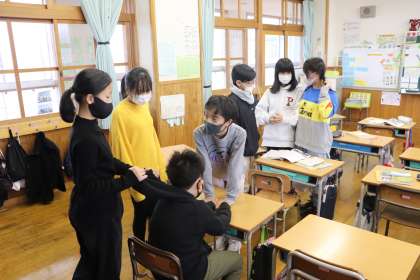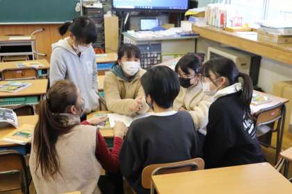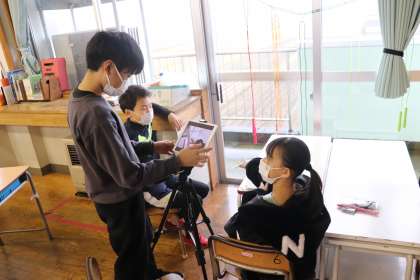グループごとに話し合い、自分たちが伝えたいニュースを決めていました。オンラインで授業に参加していた子どもたちも意見を発表していました。