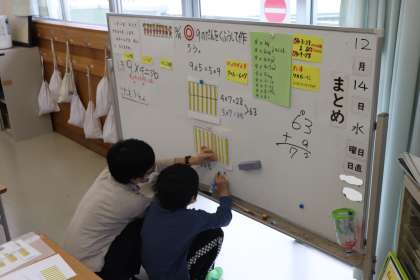 ひかり学級の低学年は、9のだんを工夫してつくる学習をしていました。