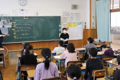 5限、4年生は総合で、「冬の通学路の危険(防災教育プログラム 雪害編)」について考えました。