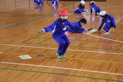 片足跳び、しゃがみ跳びなど様々な跳び方に挑戦していました。