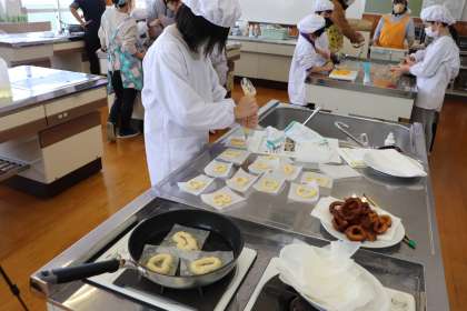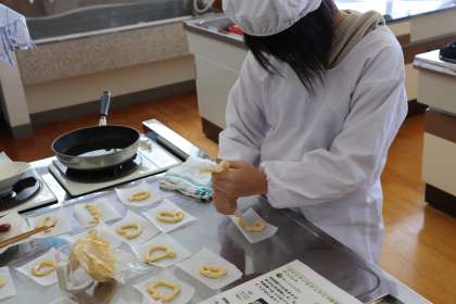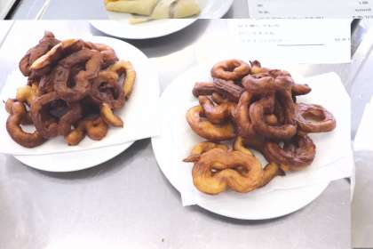 ドーナツは、形を工夫して揚げていました。