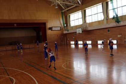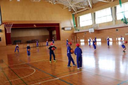 ドッジボールよりも大きくて重くて堅いバスケットボール。