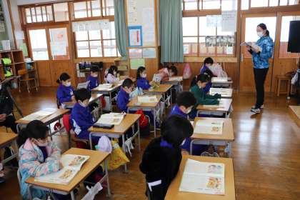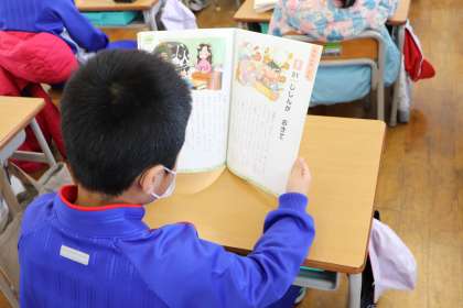1限、1年生は道徳「じしんがおきて」の学習でした。