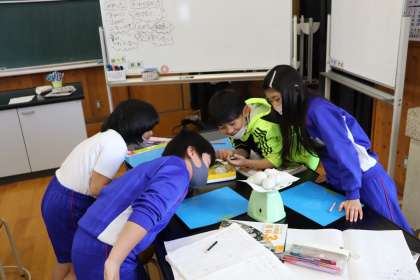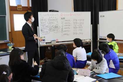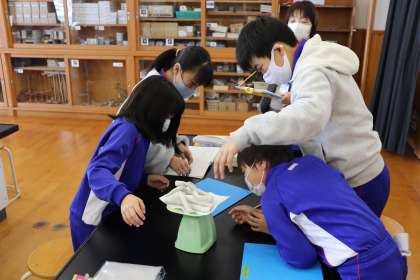 3限、3年生は理科室で理科「ものの重さ」の学習でした。