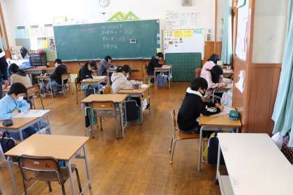 1限、4年生は理科「もののあたたまり方」のテストをやっていました。