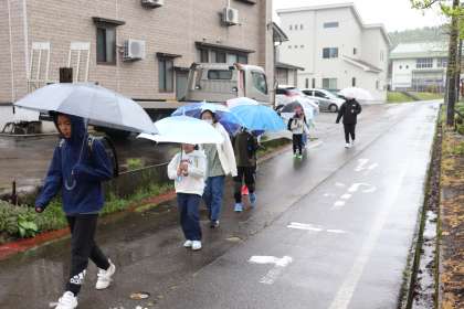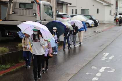登校班ごとに話し合ったことを生かして下校していました。